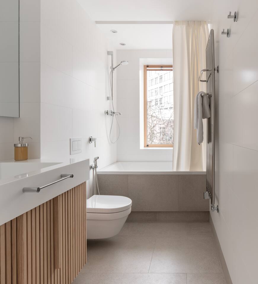 The apartment has 24/7 access and comes with all the necessary amenities: - high-speed wi-fi internet access & cable TV - direct cable connection to the router (UTC/LAN) for extra stable distance work - queen-size bed - fully-equipped modern kitchen with a spacious fridge - designer furniture - washing machine - heated floors & conditioner As well as independently heated water, iron, iron desk, hair-dryer, toilet & shower amenities. Excellent for a couple or a family. No smoking, no parties, no animals. The flat is fully suitable for animal-allergic guests.